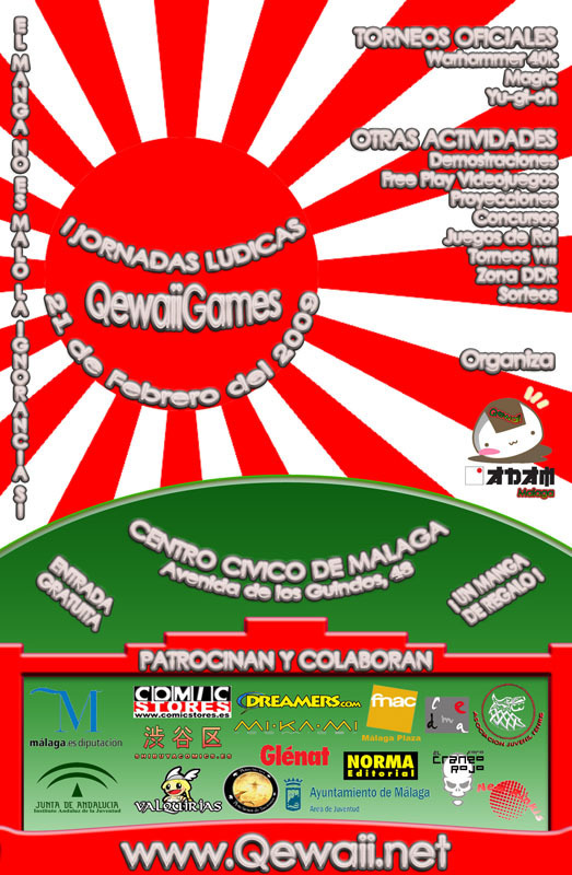 Las I Jornadas Lúdicas "QewaiiGames", se realiza por parte de la Brigada Qewaii, sección local de ADAM (Asociación en defensa del manga y el anime) de Málaga.