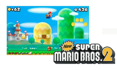 Nintendo España nos confirma que lanzarán para Nintendo 3DS el New Super Mario Bros. 2 , un nuevo, aunque tradicional, juego de aventuras de desplazamiento lateral protagonizado por Mario, Luigi y muchos otros personajes del universo Mario. El juego ha sido específicamente creado para ofrecer una experiencia de juego inmediata, de modo que jugadores con todo tipo de habilidades en los videojuegos puedan disfrutarlo desde el primer momento. New Super Mario Bros. 2 llegará a España en agosto. ![]() |