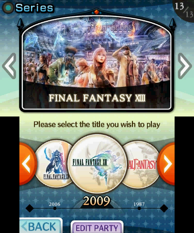 FINAL FANTASY, como Cloud, un moguri, Lightning, un chocobo, Tidus, Cecil, Terra y Squall.