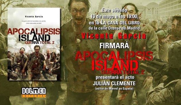 Este próximo sábado 19 a las 19:00, en La Casa del Libro de la calle Orense de Madrid, Vicente García presentará y firmará ejemplares de su libro Apocalipsis Island: Guerra Total, acompañado por Julián Clemente como maestro de ceremonias.
